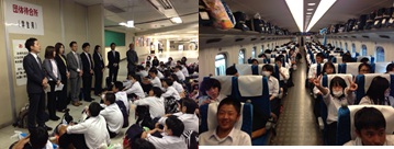 三年生修学旅行団は予定通り名古屋に到着し、今バスに乗り込むところです。