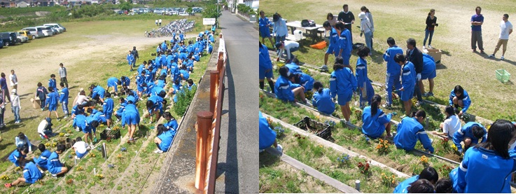 本日、初夏を思わせる晴天のもと、第2回のフラワーオアシスを行いました。130人あまりの生徒が参加し、チューリップの球根の掘り出しと、草取りを行いました。採れた球根は、乾燥させた後、秋に土に埋めます。来年の春にはまた美しい花々を咲かせることになります。