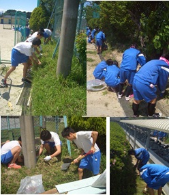 テスト明けの今日、全校で一斉に除草作業を行いました。