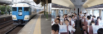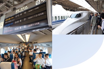 予定通り新幹線に乗車しました。普段の体育館での集会で静かに並んで入場できる子どもたちは、その力を生かして実にスムーズに車両に乗り込みスタートしています。普段の学校生活の行動がいかに大切かということを証明してくれました。