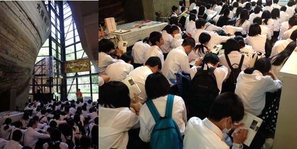 次の見学地は、2グループに分かれ前半クラスは、第五福竜丸展示館、後半クラスは浅草の散策です。