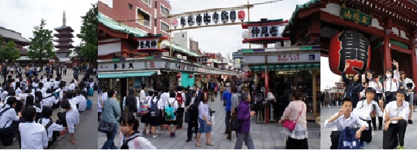 お土産を買ったり、雷門の前で記念撮影をしたりと楽しい時間を過ごしています。