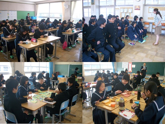 〈あいさつと笑顔〉 ○本校の学校教育ビジョンでめざす学校の姿は、「笑顔と感動があふれる学校」です。このことから、これまで以上に生徒も教師も清々(すがすが)しさを感じられるあいさつが行き交うようになれば、より笑顔があふれる学校となるでしょう。では、どうしたらそうなるのか・・・。 ○残念ながら方程式で導くような明確な方法は見当たりません。言えることは、エイミー先生と生徒が交わすあいさつのように、あいさつは人と人との良い関係の中で生まれるということです。 ○幸い、朝明中学校は、仲間を大切にしようとする生徒が多いことが全国学力・学習状況調査からも明らかになっています。このことは、あいさつと笑顔があふれる学校を実現する大きな土台となることでしょう。それに期待し、また明日からみんなで笑顔のあいさつを! |