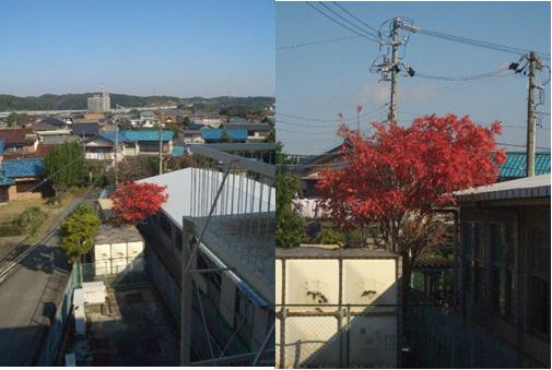 朝晩めっきり冷え込むようになり秋が深まっています。敷地内のもみじも色づき始めました。今年は特に技術室西のもみじが鮮やかに色づいています。