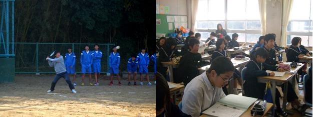 昨日、大矢知興譲小学校の2人の先生が初任者研修の一環として本校に1日研修にみえました。久留先生は、1年4組の学級指導と各学年の英語の教科指導を、稲垣先生は、2年6組の学級指導と各学年の体育の教科指導をしていただきました。研修された感想として、学習するための環境づくりが細かいところまでいき届いていること、楽しいながらもけじめのある授業がなされていることをあげられました。お2人とも1日しっかり生徒と関っていただき、内容の濃い研修になったと思います。