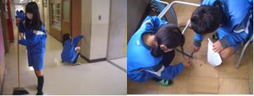 机や椅子の脚のほこり取りから、こまかな汚れとり、ワックスがけと、みんな一所懸命校舎を美しくしていました。