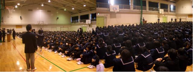 整然とした中、生徒たちは、しっかりと顔を向けて話を聞いていました。