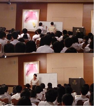 夕食後に、ホテルの特設会場に特別講師ピーター・フランクルさんをお招きし、「人生が楽しくなる方程式」についてお話しいただきました。