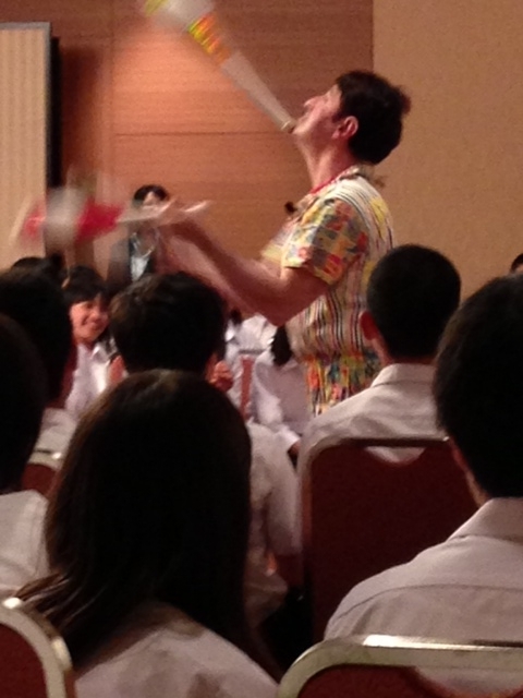 数学者であり、大道芸もばつぐん、登場したすぐは、まずこんなふうにジャグリングをしてくれました。