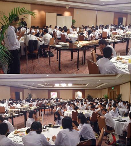 全員元気に朝食をとりました。実行委員さんからの連絡をしっかり聞いています。