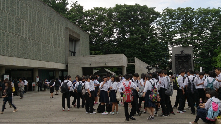 国立西洋美術館で開催中の「ラファエロ展」に並ぶ生徒たち。