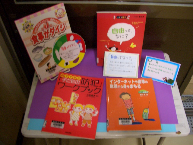 今回は、夏に向けて、忘れがちな生活や身近な危険等について考えるきっかけになる本〜食事、インターネット、自由等〜を並べてもらいました。悔いのない、自分を大切にした夏休みを過ごせるようにしましょう。