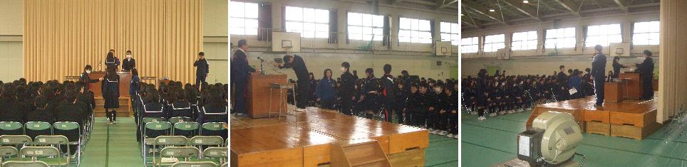 修了式では、校長先生から、まず、修了式の意味について、その後、お互いを理解し支えあってみんなが楽しく過ごしやし教室や部活にしていってほしいことと人と人とのコミュニケーションを大切にしてほしいということを話していただきました。