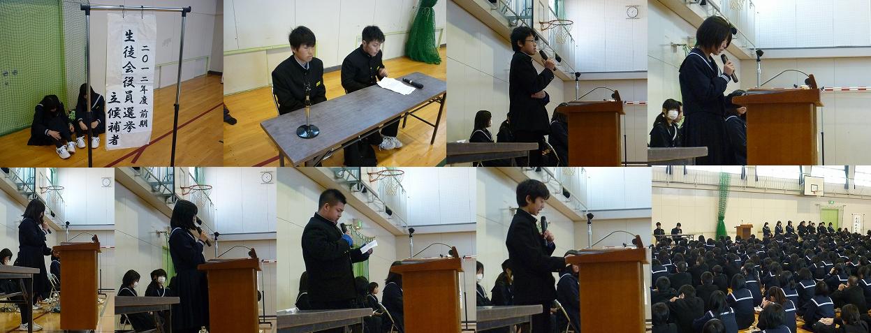 本日の5時間目は来年度の前期生徒会役員の選挙のための立会演説会を行いました。