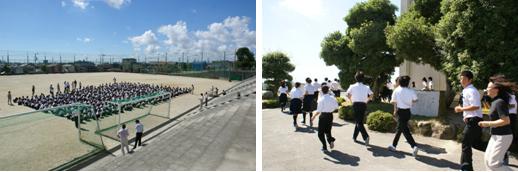 9月1日は防災の日ですね。終業式後に行われた避難訓練では,地震予報の放送が流れ,1分後に地震が起こり,速やかに避難するという設定でした。今回の訓練ではグラウンドに避難・集合・点呼・報告までを3分53秒で行うことができ,4分以内に避難する目標を達成することが出来ました。 |