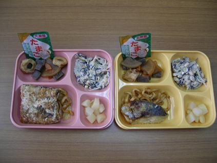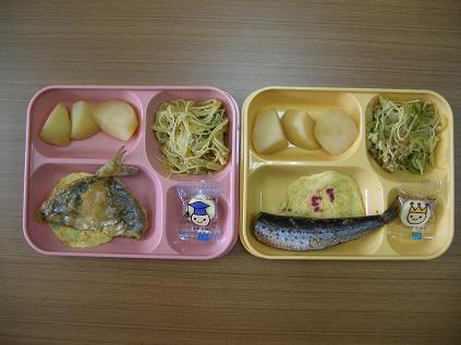今日のメニューは、A「さんまの竜田揚げ 853Kcal」、B「さわらの西京焼き 831Kcal」でした。他のおかずは、焼きうどん、こんにゃくの和風煮、大豆とひじきのサラダ、たまごふりかけでした。今日は両メニューともに「魚」でした。予想どおり注文数は少なくなってしましました。 味は十分なものだと思うんでですけどね・・・。 |