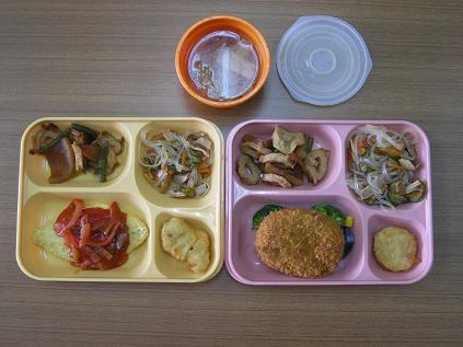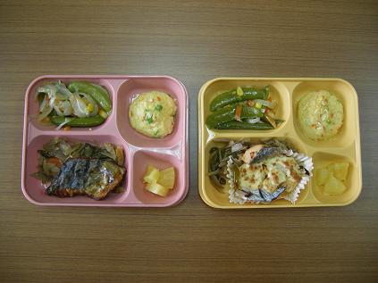 今日のメニューは、A「さわらの香味揚げ 835Kcal」、B「鮭のマヨネーズ焼き 833Kcal」でした。その他のおかずは、きんぴらごぼう、スナックえんどうのソテー、豆腐と玉子の寄せ蒸し、フルーツ(パイン)でした。2日間食べてみて、ご飯とおかずをバランスよく食べ進めることの大切さを改めて感じました。 |
