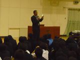 本日特別日課で、6限目に青少年育成室の伊藤室長を招いて「喫煙防止教室」を開催しました。タバコの先から出る副流煙の毒性の強さや害のお話の後、VTRも見ました。タバコの煙で細胞が壊れたり、タバコを水に溶かした液でミミズが細くなったり・・タバコは生命に多大な影響を与えることがわかりました。 |
