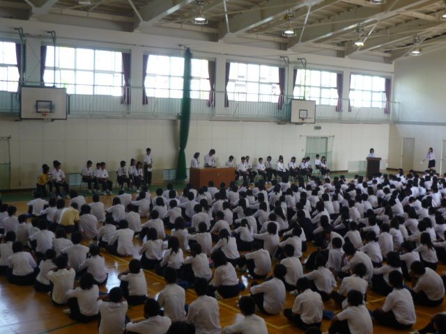 体育祭を終え一段落ですが、あと1ケ月半で文化祭になります。そろそろ山のコンサートに向けて練習をしなければなりません。 本日6限目に1年生の学年合唱の練習をしました。1年生らしい歌声でした。さらにレベルアップをして、はじめての「山のコンサート」にのぞみましょう。 |