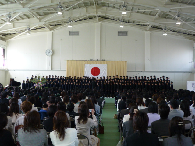 校庭の桜が満開の中、入学式が行われました。写真は、2・3年生有志による歓迎の歌です。羽津中らしい入学式でした。 ホームページをごらんの皆様、本年度もよろしくお願いいたします。 |