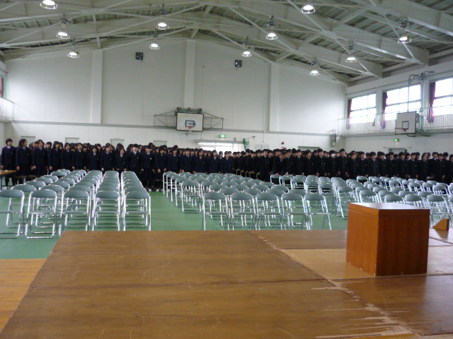 10日の卒業式に向かって準備が進んでいます。昨日は会場準備をし,今日は1・2年生が式歌合唱の練習をしました。これまでも何回か練習してきていますが,会場ができてくると緊張感も高まります。今日の歌声は一段と声も大きく,ハーモニーも素敵でした。卒業式にはきっと素晴らしい合唱を聴かせてくれることでしょう。 |