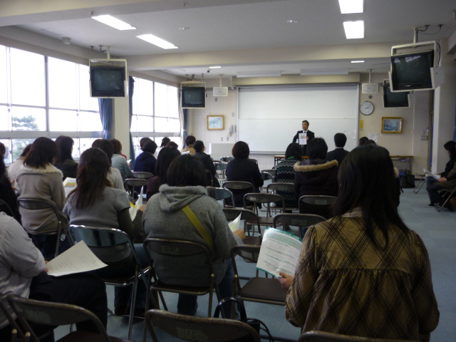 写真ではなかなかわかりにくいですが,女子の体育は持久走が終わって,ソフトボールの授業が始まりました。グローブを手につけてボールを投げる・キャッチするという運動は普段からやっていないと難しいものですが,生徒たちは楽しそうにキャッチボールをしていました。体を動かすことは楽しいものです。 |