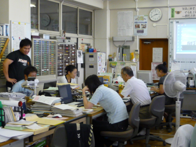 本日午前は職員会議、午後は一人一台パソコンの研修を行いました。プリンタや個人メールの設定とメールの送り方など基本的な研修ですが、なかなか難関です。隣同士や学年内で互いに講師になって教えあいながら行われました。いよいよ2学期のスタートです。 |
