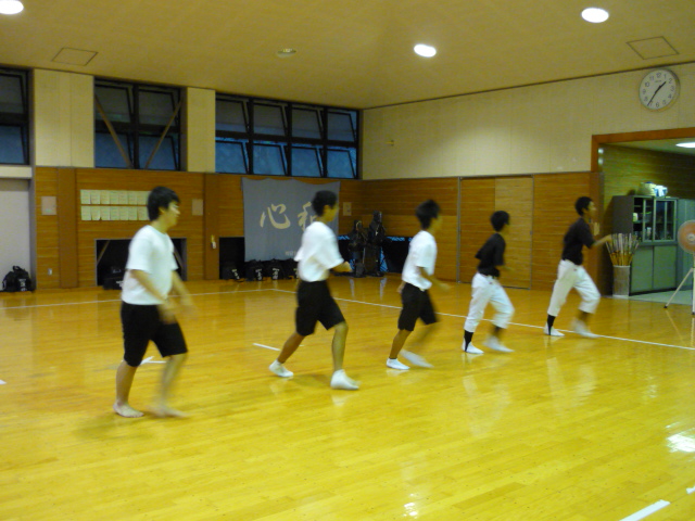羽津中恒例の体育祭の全校ダンスの練習風景です。生徒会役員の生徒が,できあがったダンスを踊っている所をビデオに撮ってもらっていました。このビデオや講習会を元に,夏休み明けの1週間ほどで全校ダンスに仕上げます。毎年違う曲で違う振り付けを考えるので大変な作業ですが,全校でやり遂げた時の感動はひとしおです。当日はぜひできばえをご覧ください。 |