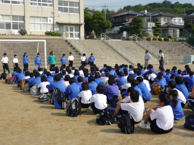 梅雨とは思えないすばらしい天気になりました。本日は1年生の自然教室の出発日です。朝から焼け付くような太陽の下での出発式ですが、みんな元気いっぱいでした。本日はロングハイキングとふれあい牧場での搾乳経験です。きっとすてきな思い出をたくさん作ってくることでしょう。 |