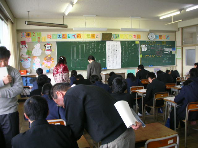 今年度も一人1回の校内公開授業を実施してきています。今日の4限目は1年生の「国語」で、「他山の石」の故事成語を使った短文を考えて理解を深める学習でした。いつものように事後に授業者と参観者が話し合い、指導力を高めあう機会を持っています。 |