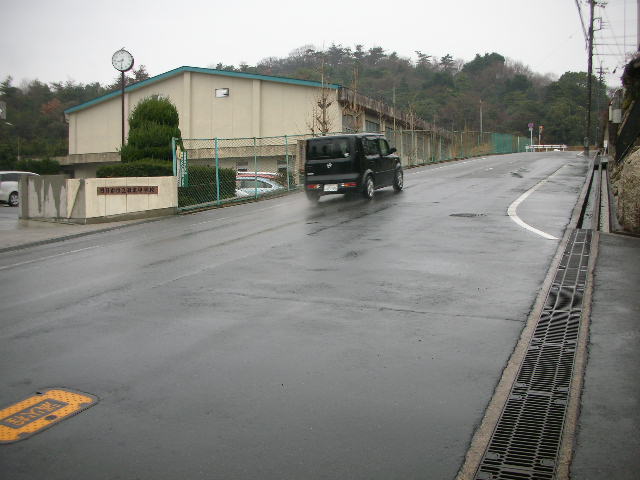 ぐずついた天気で路面がぬれています。本校前の道路です。今日は冷え込みも緩み、雪や凍結の心配はありませんが、冬のこの急な坂道は危険です。お休みの日にスタッドレスに替えておかれるといいと思います。坂の上下で立ち往生なされませぬように…。 |