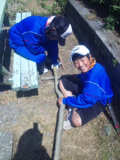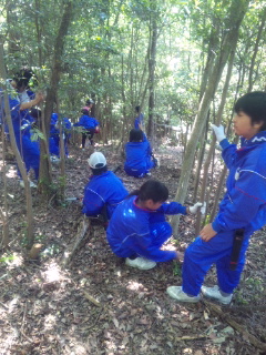 自然教室最終日です。二日間の疲れのせいか、昨夜は消灯後すぐに眠りについたようです。 三日目はまず里山保全から始まります。 写真は、里山保全の説明を講師の方から受けている様子です。 |