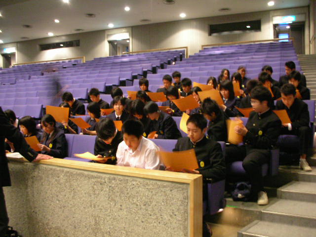 三泗音楽会初日の今日、本校は8番目の出演で、曲目は「君とみた海」でした。これまでの最高のできばえだったように思います。今朝は、写真のように、余裕を持った早い入場で、周囲はまだ空席です。プログラムを見ながらも、次第に緊張していくのが感じられましたが、館内のアナウンスが日ごろ聞きなれている本校職員の声であったことや、本校の前にこの曲を歌う学校が2校あったことなどで、気持ちが落ち着き、ステージでは声も良く出て、のびのびとした歌声を聞かせてくれました。