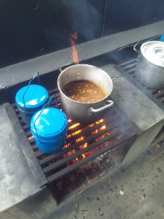 カレー作りも終盤に差し掛かっています。試食はこの後すぐです。 |