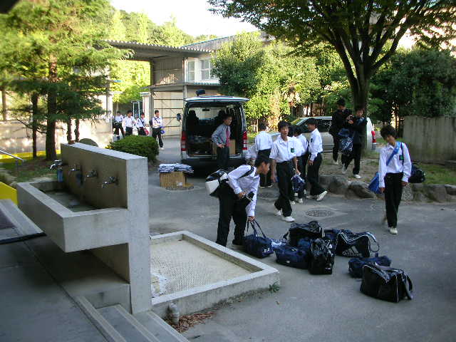 校内でまれに物品販売が行われることがあります。今朝は珍しく2種類の販売が重なりました。共に早朝の登校時で、一つは昇降口外でのウインドブレーカで、もう一つは昇降口内での高校入試問題集です。全校生徒からすると購入希望者はわずかですが、集金や商品渡しなど全てを業者の方にやっていただいています。 |