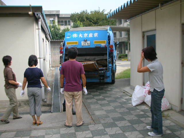 学校の活動からはゴミが出ます。まとまった期間になると、かなりの分量になります。今日は埋め立てゴミの回収でした。回収業者の方は、この異常なほどの蒸し暑さに驚きながら、それでも、処分しにくい回収物もほとんどOKが出て引き取っていただきました。ゴミ袋の山がすっかりなくなると、それはいい気分です。次回の回収は年度末の3月です。 |