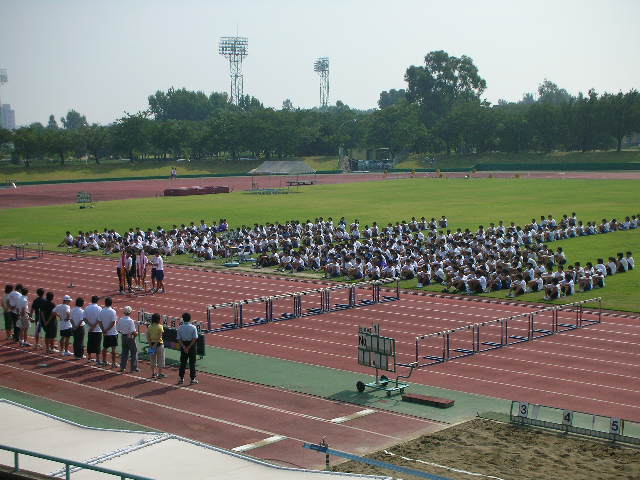 「世界陸上大阪」で繰り広げられるドラマが楽しみな毎日ですが、中体連陸上の県予選大会は今日と明日の二日間にわたり、中央緑地陸上競技場で行なわれています。本校には陸上部はありませんが、3年男子と1年女子の2人が出場しています。期待の選手たちです。 |