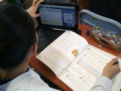 授業の最後には、タブレットに配信されている「テストパーク」に挑戦し、学習の成果を確認しました。「できるようになったところ」「もう少し練習したいところ」を自分で確かめ、次の学習につなげようとする姿が見られました。