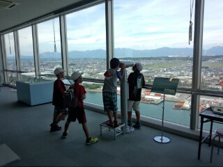 ポートビルにつきました。高いビルにびっくりです。いまエレベーターいや苦戦中。