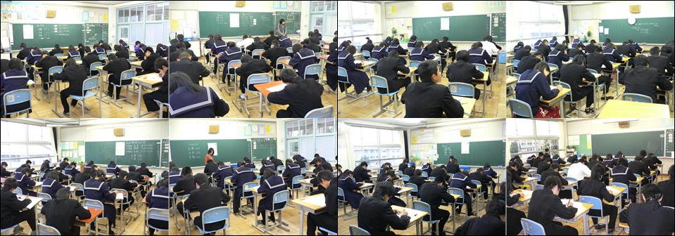 昨日と今日の帰学活後、全クラスで「一緒に勉強会!」をしました。来週の月曜日から3日間、2学期末テストがあります。それに向けた“勉強会”です。自分で決めた教科の問題集やプリントをしたり、ノートまとめをしたり、それぞれ一生懸命勉強していました。本来、勉強は言われてするのでなく、自主的にできるようになっていかなければなりませんが、一人では自分に負けてしまい、ついついサボってしまったりすることがあります。「一緒に勉強会」では周りのみんなの一生懸命勉強する雰囲気を感じ、“自分もしっかりやらなければ!”という気持ちを自分で持てるように、またどうやって勉強したらよいかわからなくても、周りの子に勉強の仕方を教えてもらったり、つまずいているところを教えてもらったりして、自分の勉強につなげていくことを期待しています。学校での“勉強会”はほんの30分ほどなので、あとは家で自分でするしかありません。 生徒のみなさん、期末テストに向け、明日、明後日の休みを有効に使ってくださいね。