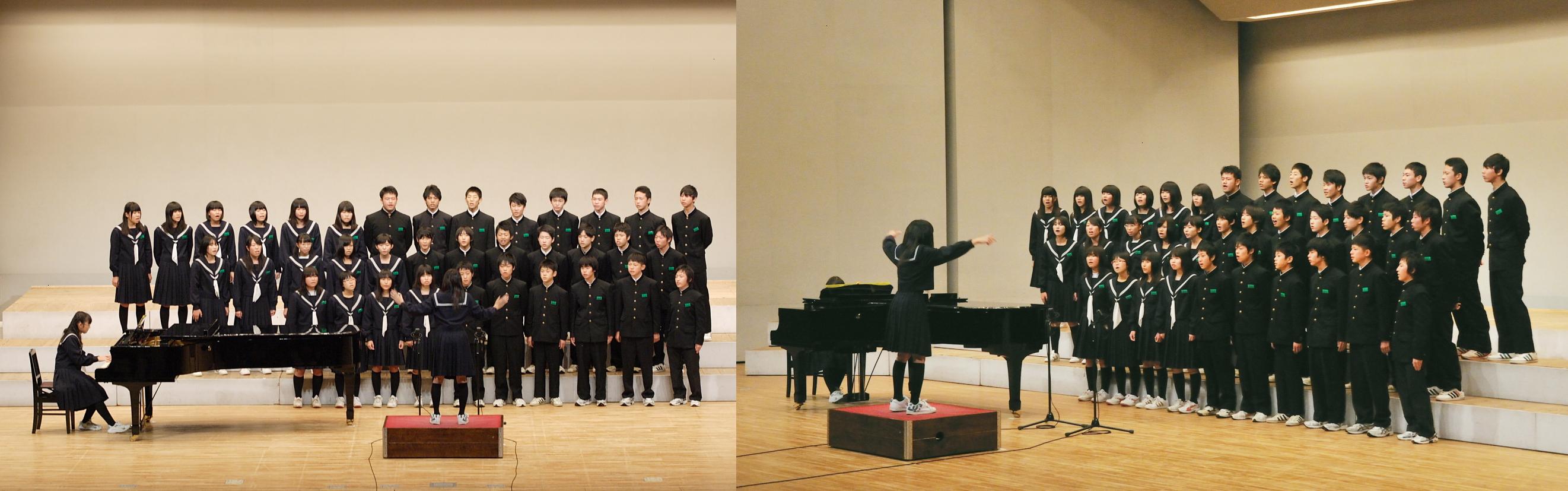 【合唱コンクール審査結果】 金賞 3年A組、3年B組、2年C組 銀賞 2年A組、2年B組、1年B組 銅賞 1年A組、1年C組 最優秀クラス 3年B組 審査員特別賞 3年A組、2年生学年合唱 最優秀指揮者賞 奥川敬太さん、市川大晋さん(3A)、杉野遥香さん(3B)