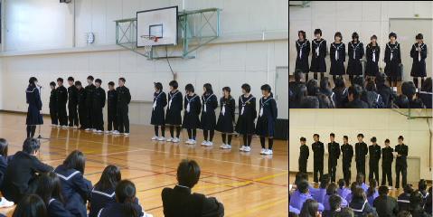 今日6限目が終わってから、明日の駅伝大会に向けた壮行会をしました。駅伝部男女キャプテンからメンバーの紹介と明日の大会への決意表明、野村生徒会長から激励の言葉がありました。 駅伝メンバーは以下の通りです。 ≪女子≫ 1区(2.93km) 齋藤菜月(1年) 2区(1.63km) 山川乃愛(1年) 3区(2.11km) 中嶋みのり(2年)キャプテン 4区(2.11km) 市川実咲(2年) 5区(2.53km) 淺井紗耶可(2年) (補欠)松島彩乃(2年)、樋口絢子(2年) ≪男子≫ 1区(3.36km) 齋藤大雅(2年) 2区(2.11km) 安田飛翔(2年) 3区(3.16km) 清水将大(3年) 4区(3.16km) 近藤 響(3年) 5区(2.11km) 奥川敬太(3年)キャプテン 6区(3.57km) 山川功喜(3年) (補欠)市川怜司(3年)、樋口航平(2年) 選手のみなさんは、明日6時40分過ぎに保々駅を出発し、大会会場へ向かいます。大会は、四日市市中央緑地運動公園周回コースで女子は10時から、男子は11時30分からのスタートです。保護者の方で見に行っていただける方はぜひ応援よろしくお願いします。学校にいる生徒のみなさんと保護者・地域のみなさん、先生たちで、選手の健闘を祈り、心の中でしっかり応援したいと思います。選手のみなさん、精一杯がんばってきてください! |