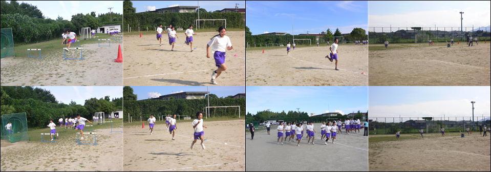 写真は放課後競技練習の個人種目練習の様子です。個人種目は、100m、50mハードル、200m、800m、1000mがあります。それぞれのクラスで話し合いの上、参加種目を決定します。自分で記録に挑戦しようとしている人もいるようです。学校のこれまでの記録を破ると、新記録として表彰されます。生徒のみなさん、がんばってください。 | |