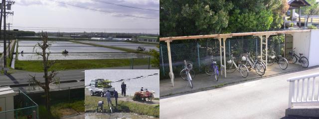 今日は朝からとてもよい天気で、学校の東の田んぼでは田植えをしていました。4月の中旬過ぎからあちこちの田んぼで田植えが始まり、ゴールデンウィークが過ぎる頃にはほとんどの田んぼの田植えが終わることでしょう。