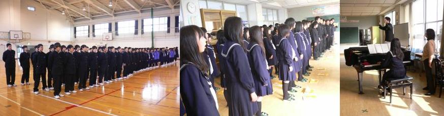 1,2年生の学年末テストが今日、終わりました。次は3月4日の「3年生を送る会」、3月8日の「卒業式」に向けて準備が本格化していきます。早速、今日は1,3年生で学年合唱の練習をしていました。 1年生にとっては、3年生に感謝の気持ちを込めて、3年生にとっては、1,2年生へバトンを渡す思い、後輩や先生たち、地域のみなさんなど、これまでお世話になった人たちへの感謝の気持ちを込めて合唱をします。あと1週間と少しですが、徐々に気持ちも高まり、当日はすばらしい合唱が聴けることと期待をしています。 放課後には、「3年生を送る会」の準備を進める生徒会役員の人たちや学級委員のリーダーたち、クラブの先輩へのメーッセージ書きをしている1,2年生たちなどの姿が見られました。3月4日の「3年生を送る会」「部活集会」も着々と準備が進んでいるようです。 |