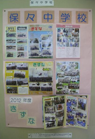 この2月23日(土)に四日市市総合会館8階で四日市市PTA連絡協議会(市P連)主催の「PTA広報紙コンクール」がありました。保々中学校からも7月と12月に発行した広報紙「きずな」を出展しました。代表でPTA広報部長の坂元さんに参加していただきました。中日ホームニュースの方から「広報部の『意図とするいきいきとした表情を伝えたい』。とても伝わってきました。『親へのメッセージ』特集もGOODです。」という講評をいただきました。