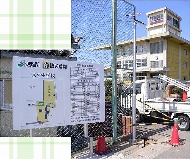 今日から正門を出たすぐ右手の位置で「避難誘導灯」の設置工事が始まりました。正門南には、保々中学校の避難所表示板が設置されています。その隣に誘導灯が設置されます。この誘導灯はソーラー電源になっているので、災害等で停電になってもあかりが灯ります。あたりが暗くなると照らされるとのことですので、暗がりに横を通ることがあれば見てみてください。