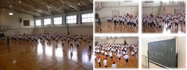 1月11日(金)の5,6限を使って小学校4年生の人たちに中学校体育館に来てもらって中学校の先生による保健体育の授業を受けてもらいました。これは「学びの一体化」といって保育園や幼稚園、小・中学校が協力しながら子どもたちを共に育てていく視点で四日市市全体で取り組まれているものの一つです。保々中学校では今回の保体の授業の他には、今年は11月に中学校英語教師が小学校へ出向き、6年生に英語の授業をしたり、7,12月に小学校の先生に中学校での補充学習に来てもらったりしたりしています。 今回の小4の保体の授業では、集団行動とダンスをしていました。写真はみんなでダンスをしているところです。楽しい雰囲気の中、みんなで合わせて身体を動かしていました。ダンスには、身体のバランスをとったり、体幹を鍛えたりする要素が含まれていて、とてもよい運動になったようでした。 |