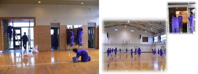剣道部は朝から武道場を、バスケット部は練習後に体育館を掃除してくれました。寒い中、冷たい雑巾をしぼって一所懸命玄関口や床面、ドア、鏡などを拭いてくれていました。いつも使わせてもらっていることに感謝の気持ちを込めてていねいに掃除してくれていました。
