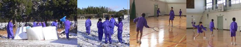 陸上部はグラウンドで運動を兼ねて二手に分かれ雪合戦?を、テニス部は体育館で壁打ちの乱打をしていました。今朝はかなり気温も低かったのですが、それぞれとても元気に活動していました。